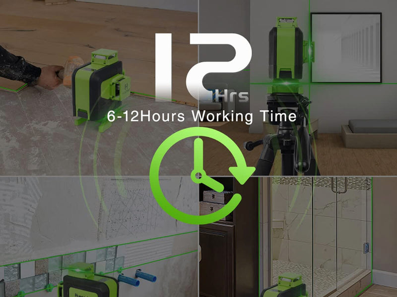 Huepar 904DG Laser Level employed a large capacity of 3.7V / 5200mAh Li-ion Battery and provides up to 6-12 hours of running time. The Li-ion Battery comes with a Type-C charging port that can be charged separately. When taking out the battery, this 4D laser level can be used at the job site by plugged in directly. The 16 lines laser level can also be charged by laptop, power bank, car charger, etc.